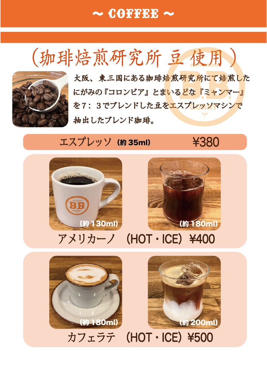 BBプリンと珈琲SETで合計¥100引き!!(※カレーをご注文いただいた方のみ)